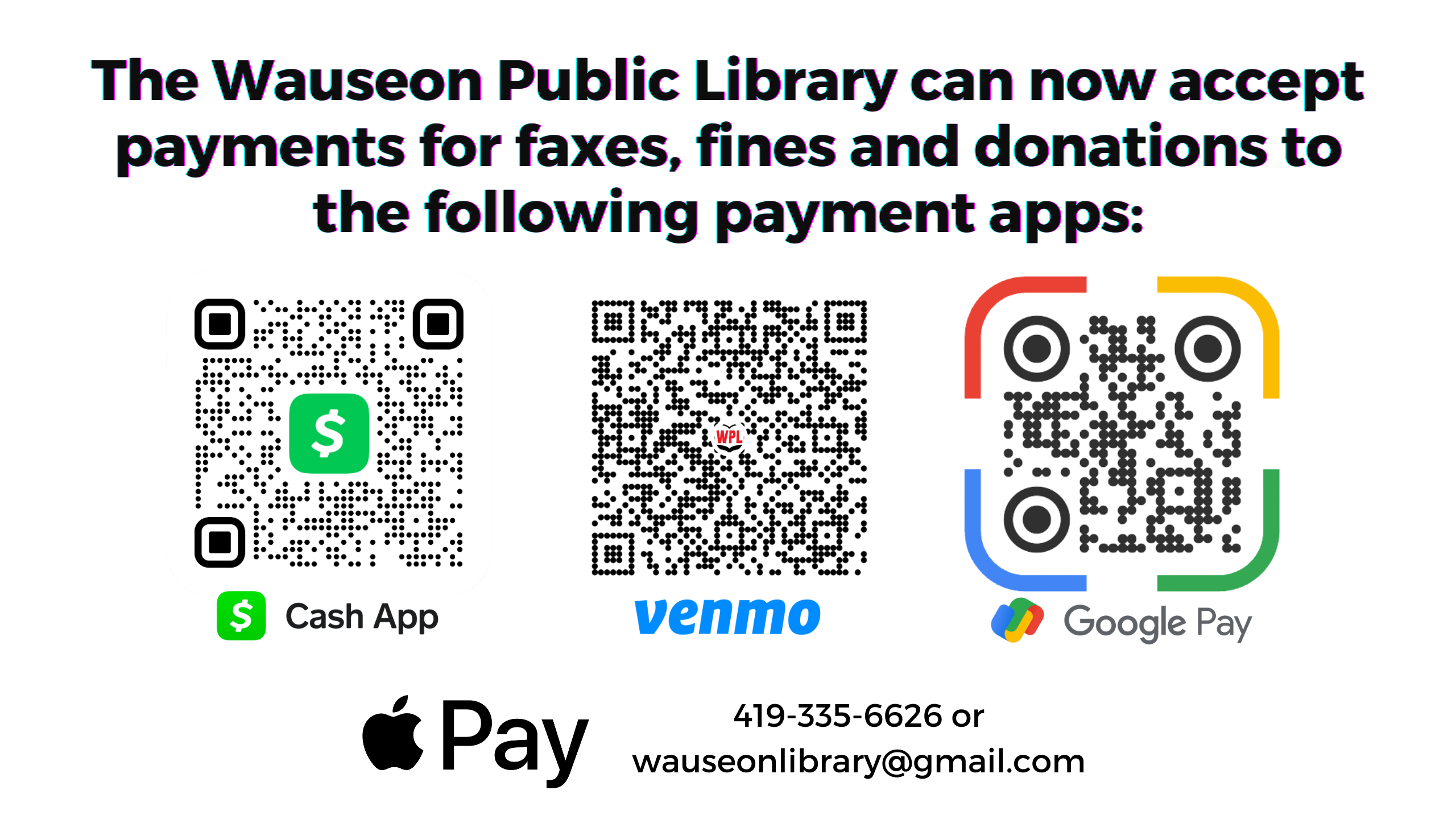 The Wauseon Public Library is a fine-free library! What does that mean? The only fines we charge now are on the late returns of our mobile hotspots and tablet hotspots, as well as if they are returned via our book drop. As a reminder, all hotspots must be returned at the circulation desk. Any fees prior to the adoption of this policy on September 18th, 2024 for late and overdue items have been waived and will no longer be applicable.